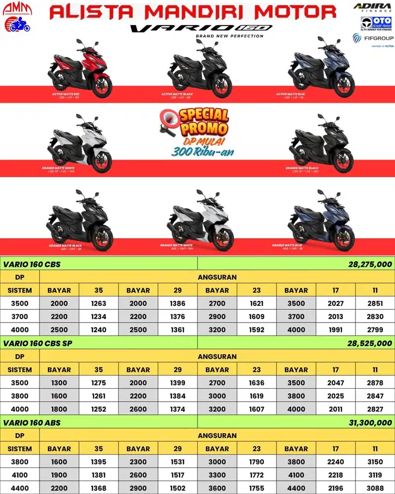 - Rp 17.900.0002018( DP 900RB ) HONDA VARIO 150 TH 2018 LOW KM MULUSCicilan Rp 1 jt/blnEstimasi Perhitungan KreditDown PaymentRp 900.000CicilanRp 1.043.000 x 29 BulanPasar Minggu, Jakarta Selatan16 Okt