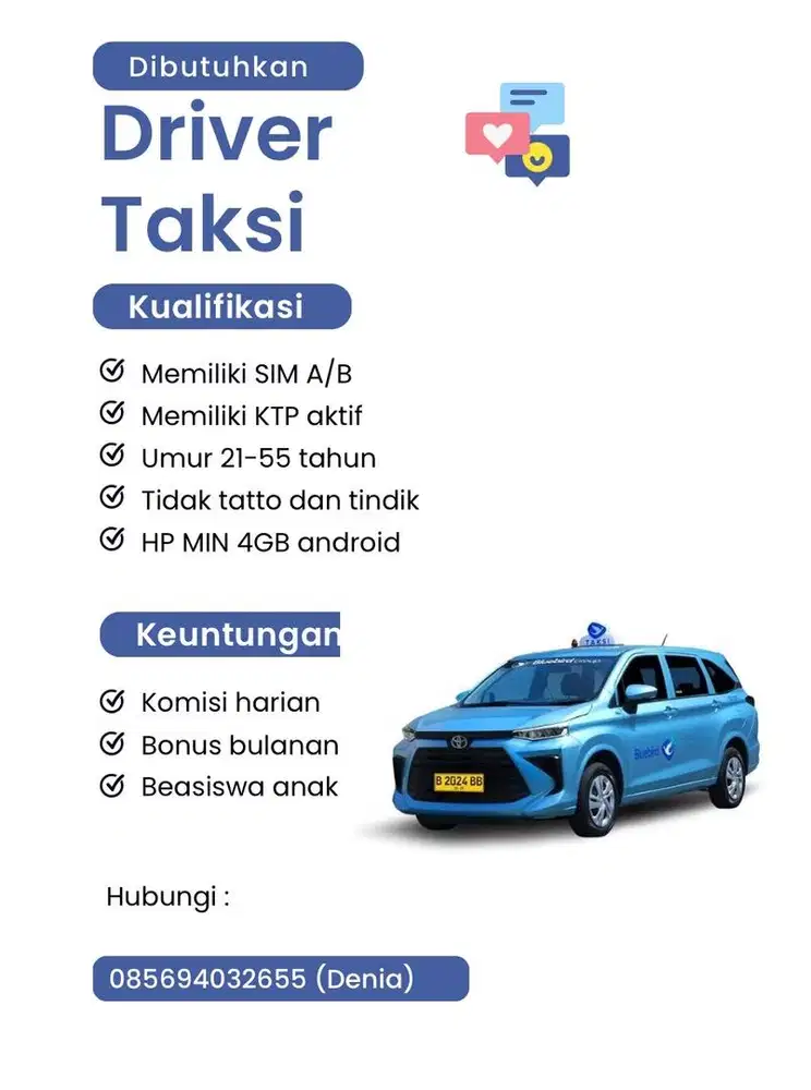 - Rp 3000000 - 6000000Driver Taksi BluebirdKebon Jeruk, Jakarta Barat6 hari yang lalu