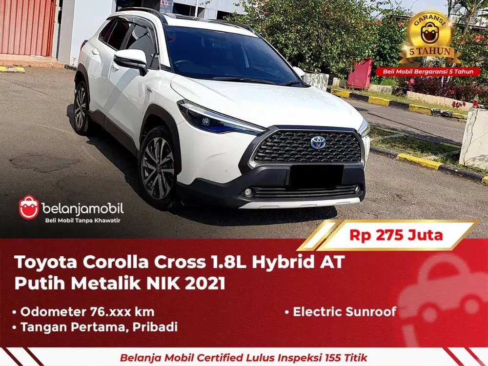 - Rp 275.000.0002021[ GARANSI 5TH ] Toyota Corolla Cross 1.8L Hybrid Sunroof AT 2021/2022Sawangan, Depok KotaHari ini