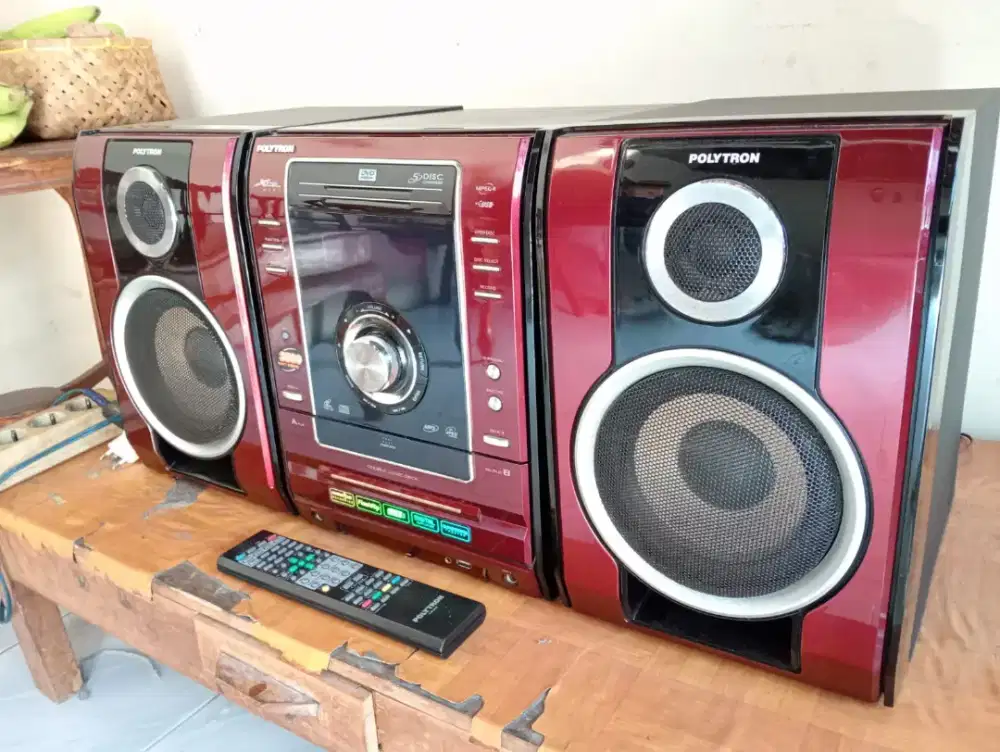 Terdapat tombol bassoke untuk penambah bass dan tombol surround untuk keluarkan suara surround