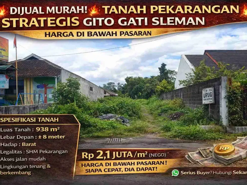 - Rp 8.300.000TANAH BONUS RUMAH INDUK & KOS 16 KAMAR – 6 MENIT DARI UGM | PANDEGADepok, Sleman Kab.Hari ini