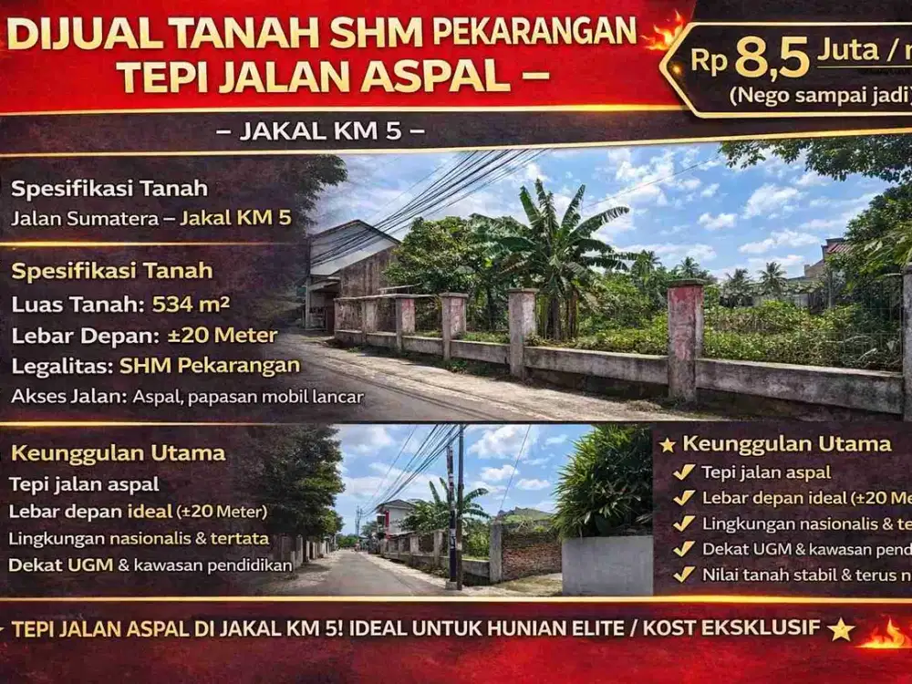 - Rp 686.000.0005 Menit Kampus UPN Jogja, Tanah Murah Maguwoharjo SlemanSleman, Sleman Kab.Hari ini