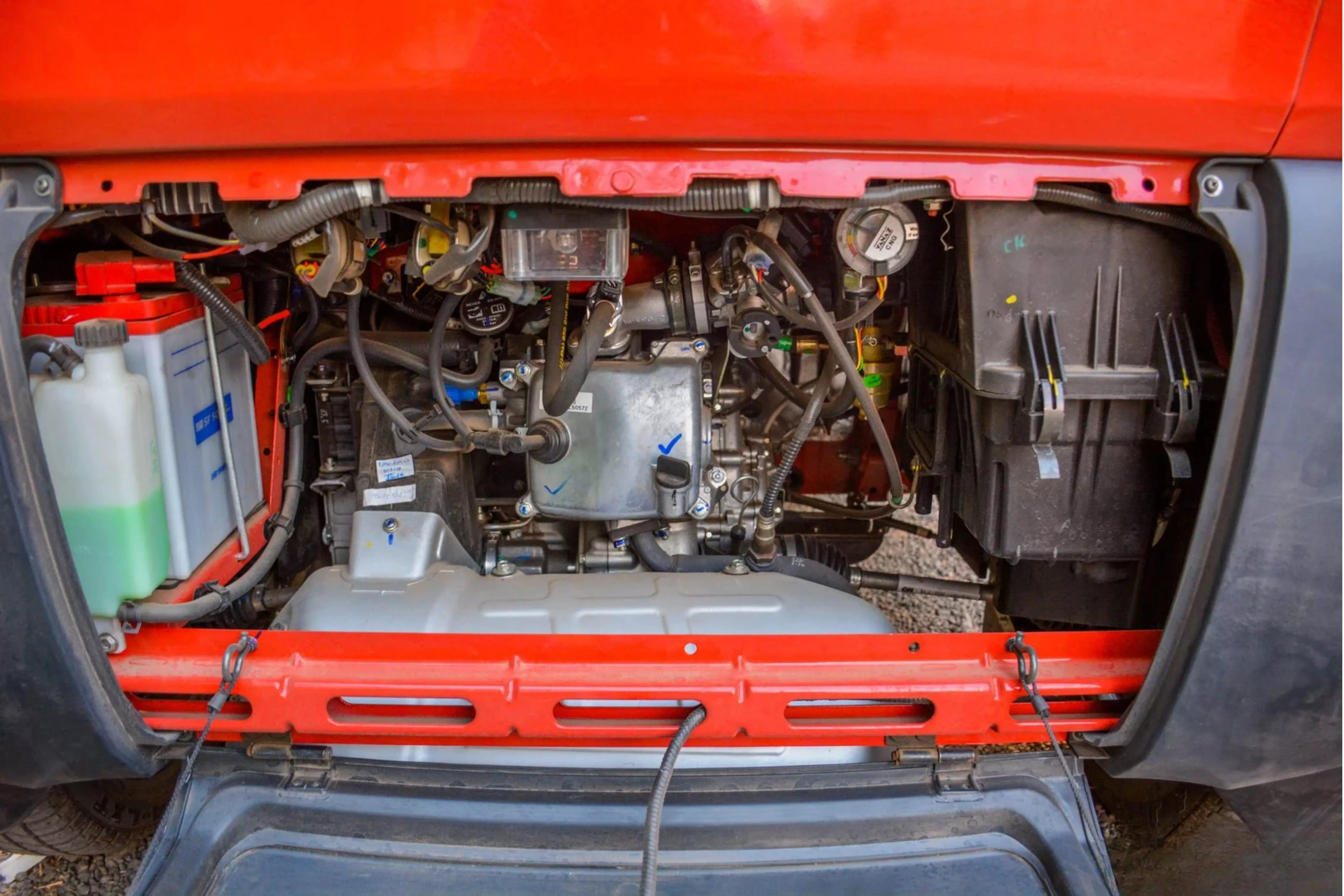 Sementara itu, tenaga yang dihasilkan disalurkan melalui transmisi manual constant mesh dengan percepatan maju dan 1 gigi mundur. Kombinasi mesin ini, dengan bobot kendaraan yang sangat ringan, mampu memberikan efisiensi bahan bakar yang cukup tinggi dibandingkan dengan mobil berukuran kecil lainnya.