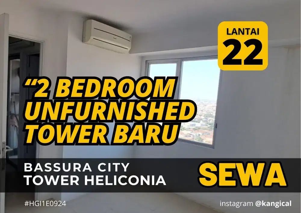 - Rp 30.000.0002 KT - 1 KM - 34 m2Sewa 2 Kamar Favorit Lantai 22 Tower Heliconia Apartemen Bassura CityJatinegara, Jakarta Timur21 Sep